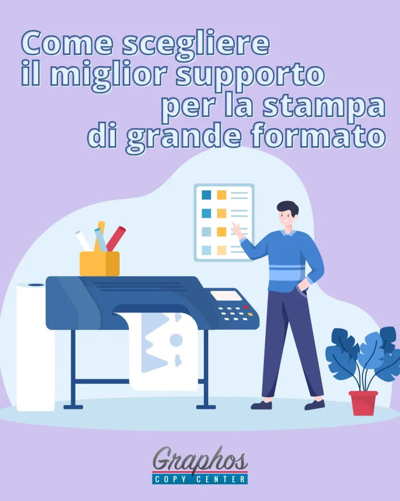 Scegliere il miglior supporto per la stampa di grande formato non è un compito semplice, ma con i giusti accorgimenti e valutazioni, puoi ottenere risultati eccellenti. Dalla destinazione d’uso alla qualità di stampa, fino alla durata e al budget, ogni dettaglio conta. Affidati a Copy Center Graphos per le tue esigenze di stampa professionale: troveremo insieme la soluzione più adatta al tuo progetto.